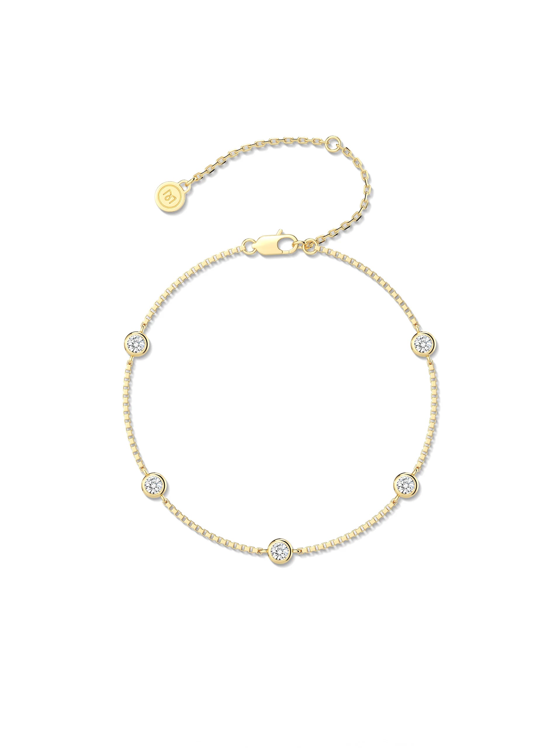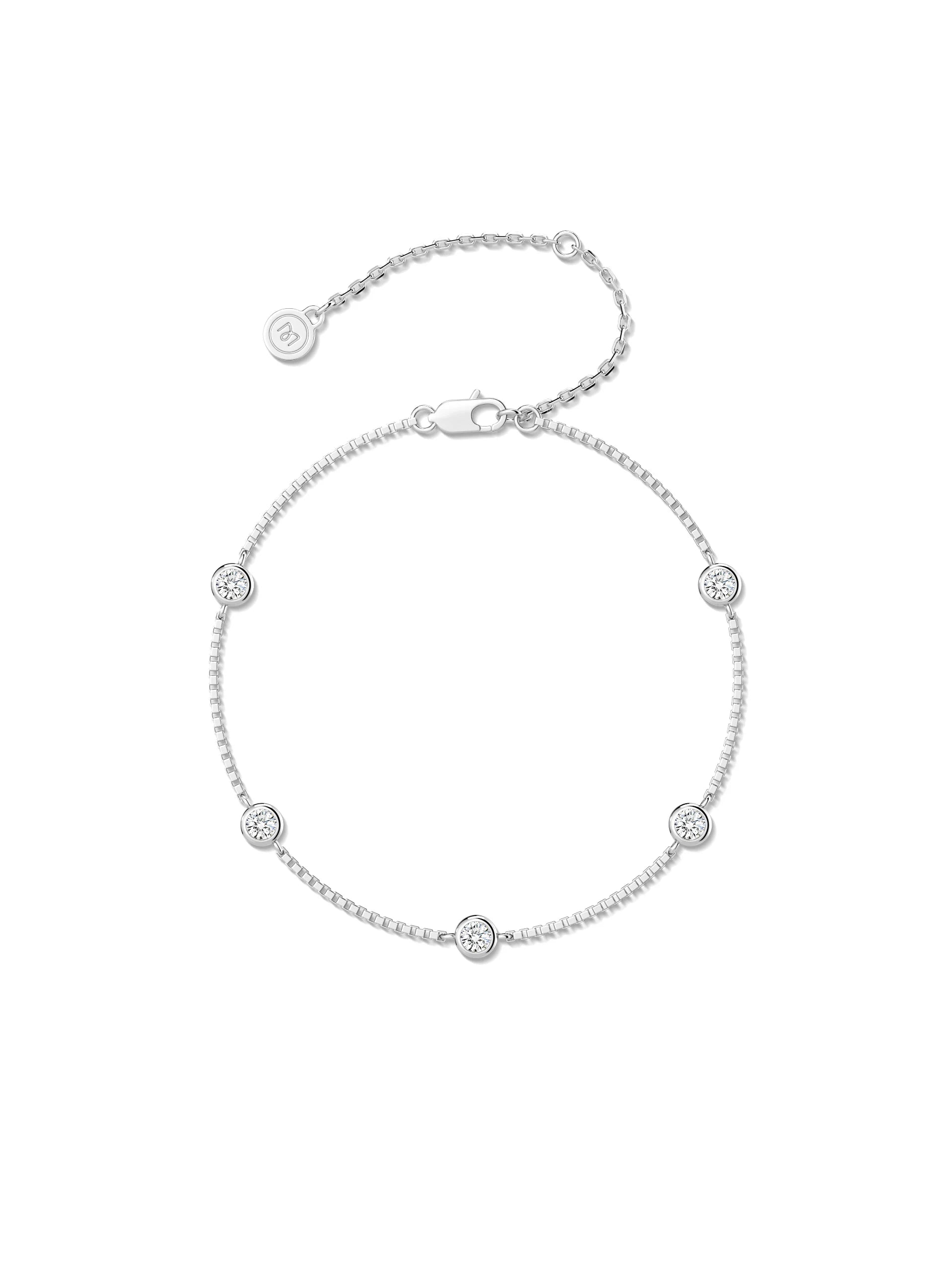 A sleek bezel-set moissanite bracelet with an adjustable chain for the perfect fit. Minimal, luminous, and made for daily wear.