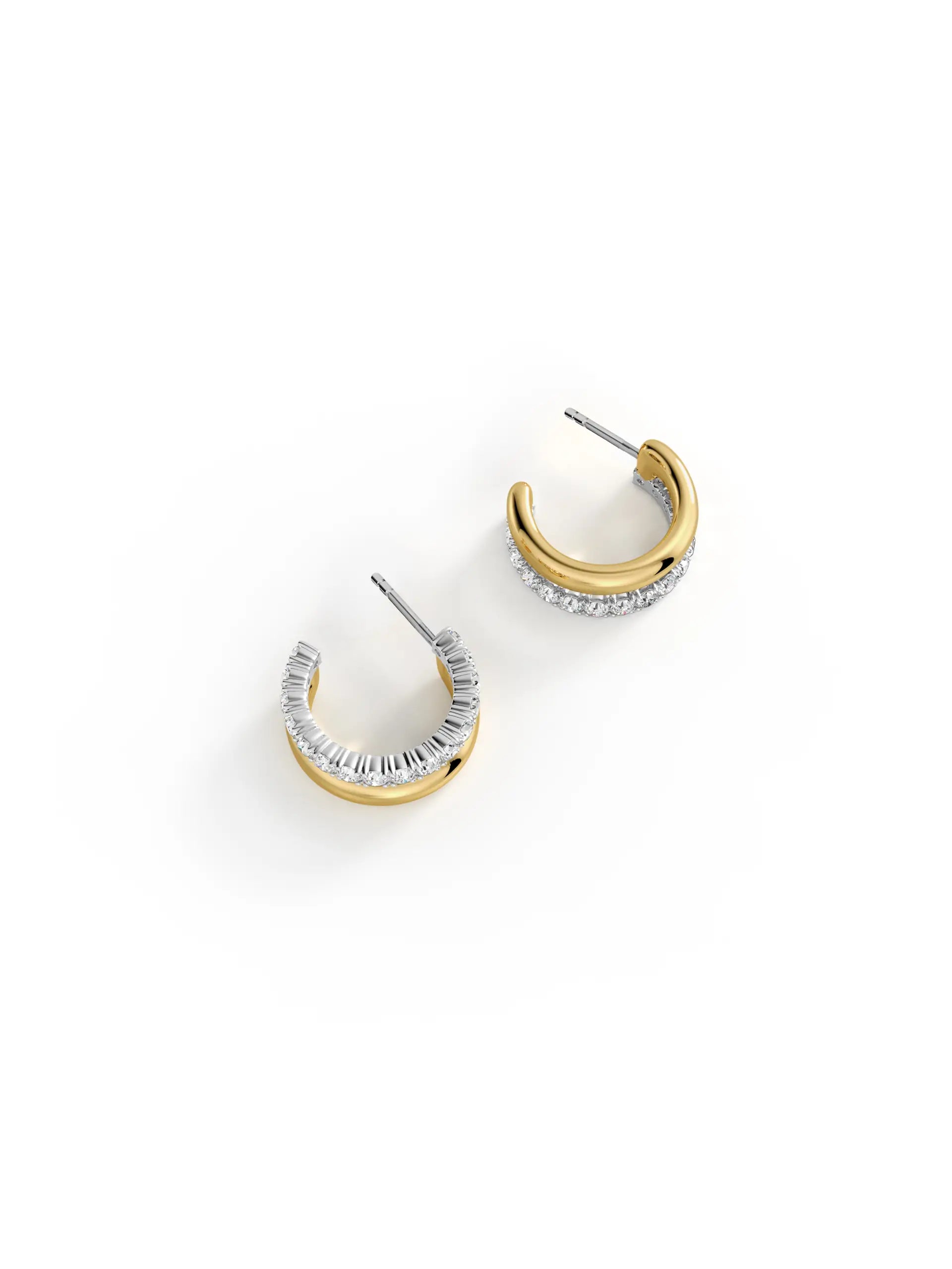 Gold and silver tones meet in a sleek double-loop silhouette with polished sparkle edges. A versatile pair designed for effortless daily wear.