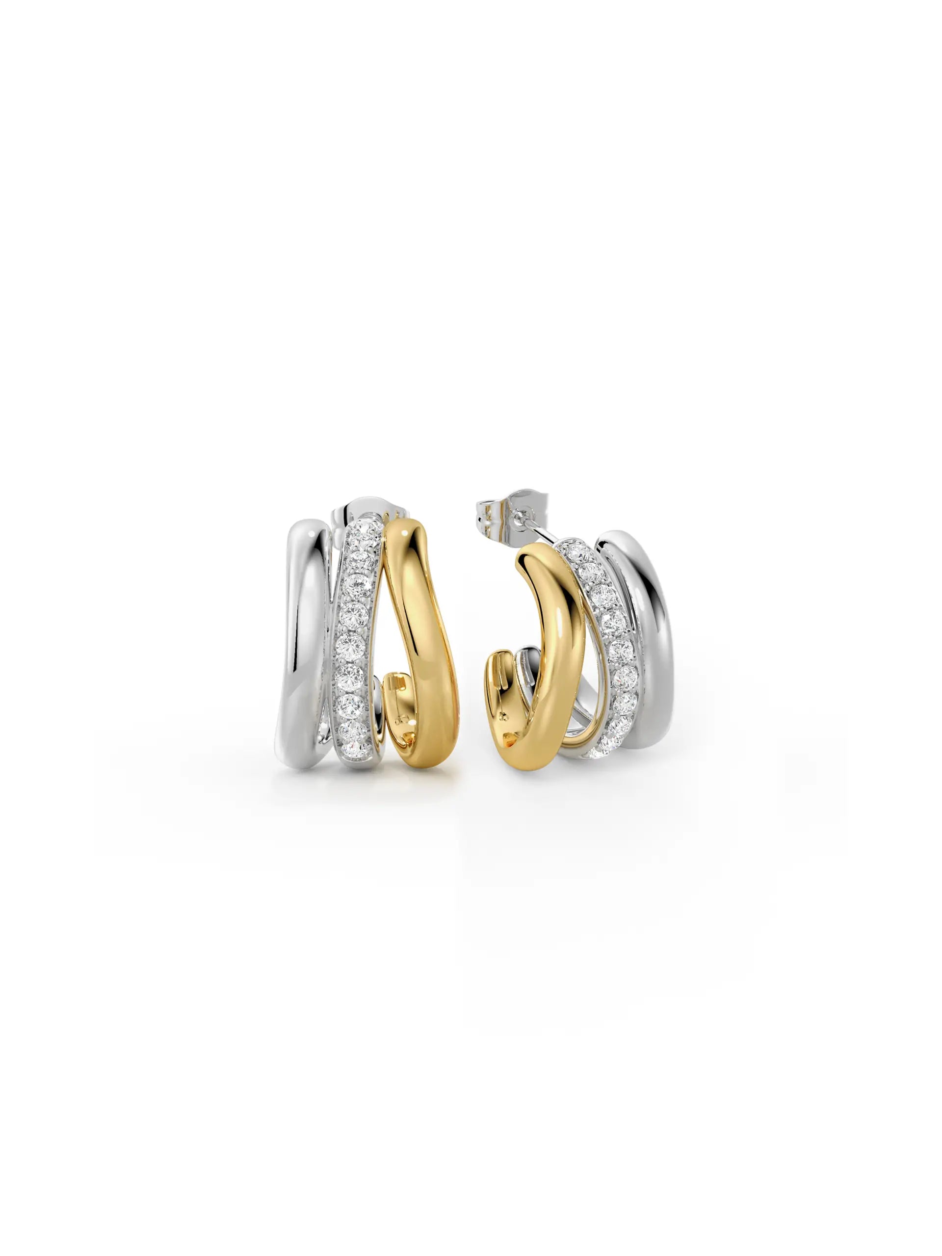Capture the luxury of a multi-layer stack in a single, elegant piece. The Stacked Ring Studs feature a voluminous 3D design of overlapping gold and silver bands, creating a bold and fluid silhouette. Crafted in premium 925 Sterling Silver, these studs offer "quiet luxury" with a noticeable impact, perfect for the modern woman who values intricate, unique craftsmanship.