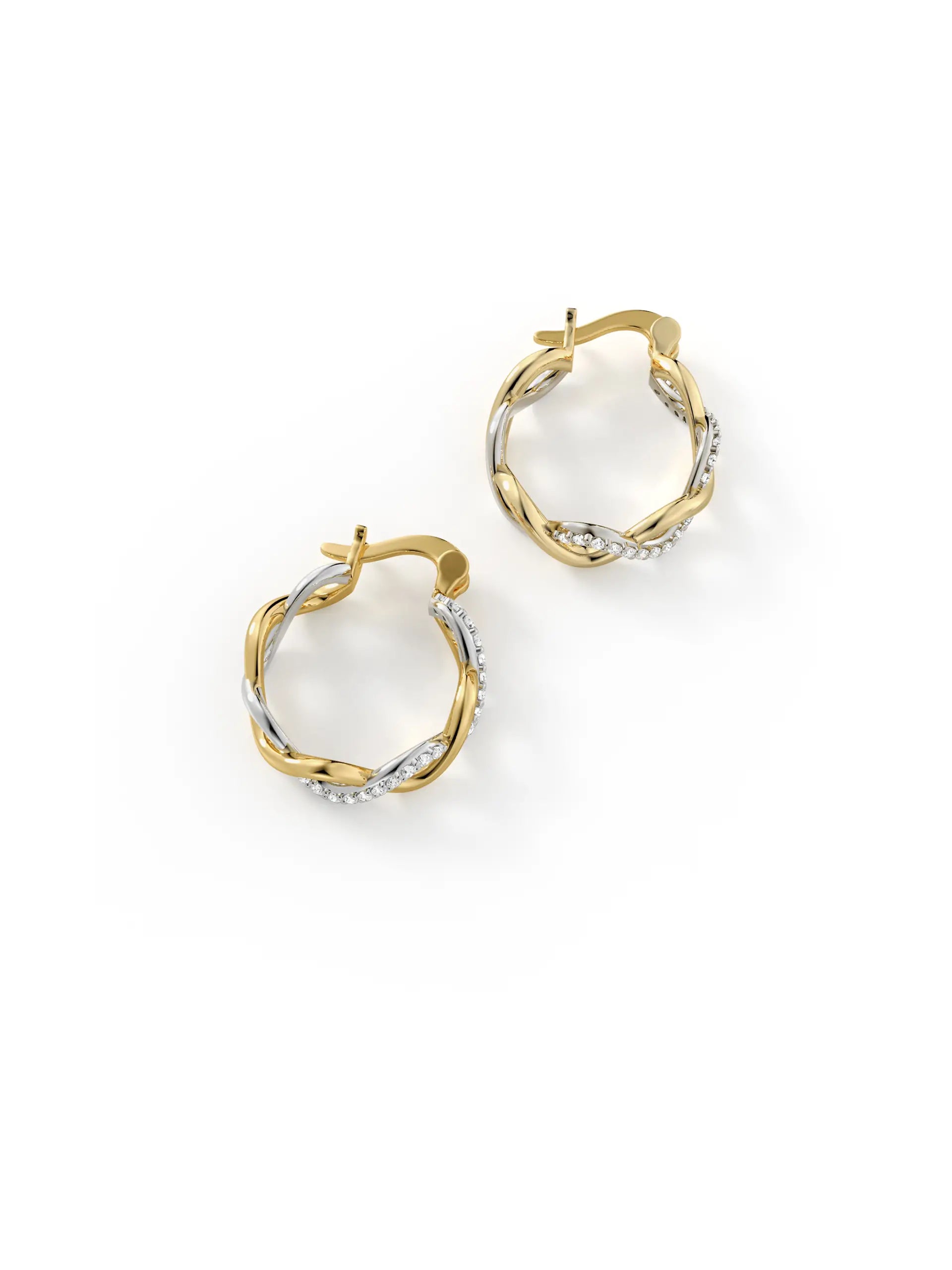 Inspired by organic movement, these twisted huggie earrings intertwine polished metal with shimmering moissanite. A timeless yet modern piece designed for effortless styling.