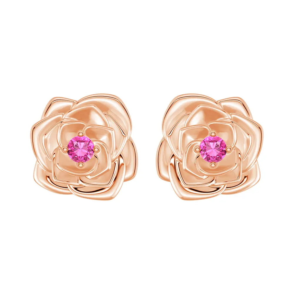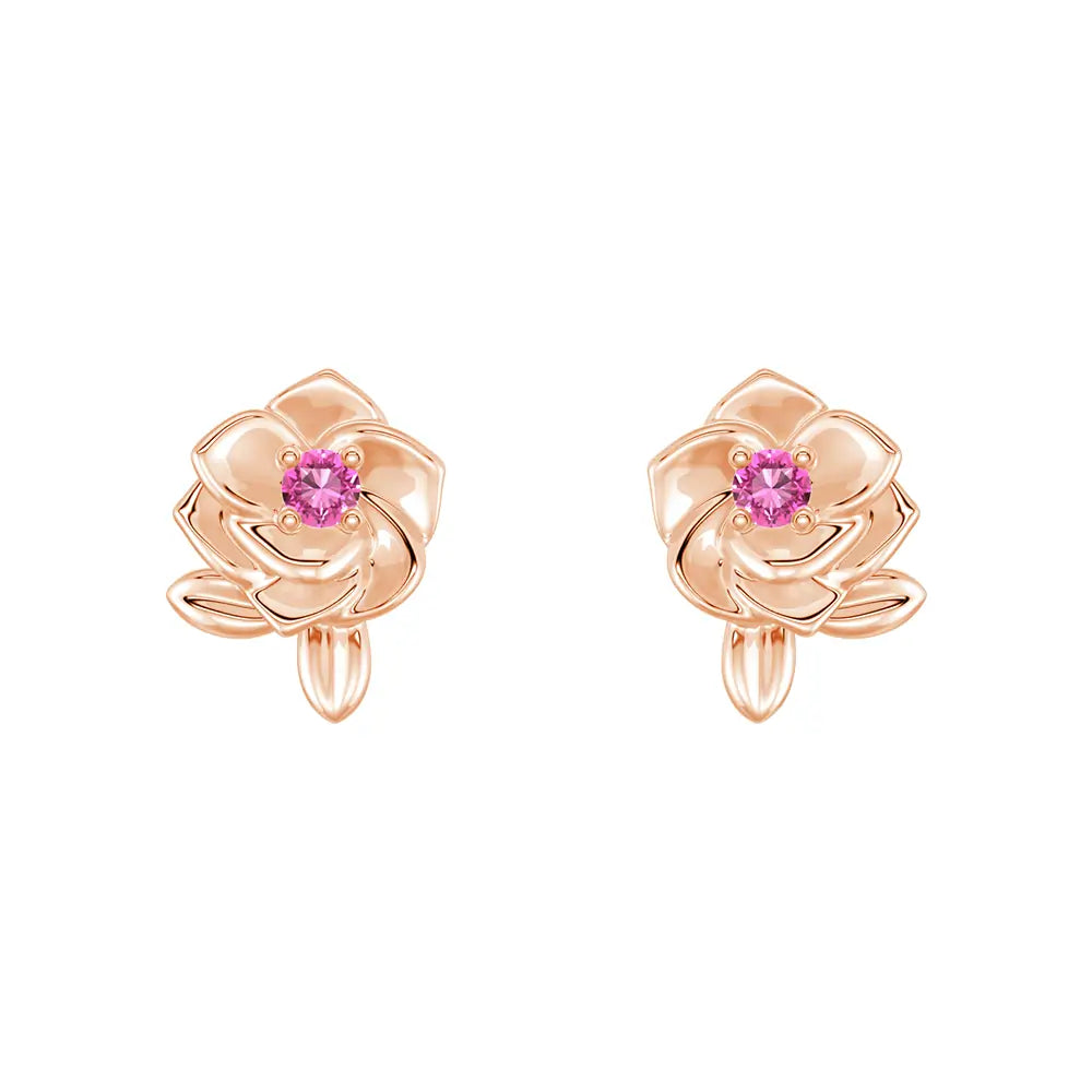 "Radiant Hope" Rose Stud Earrings with Pink Sapphire