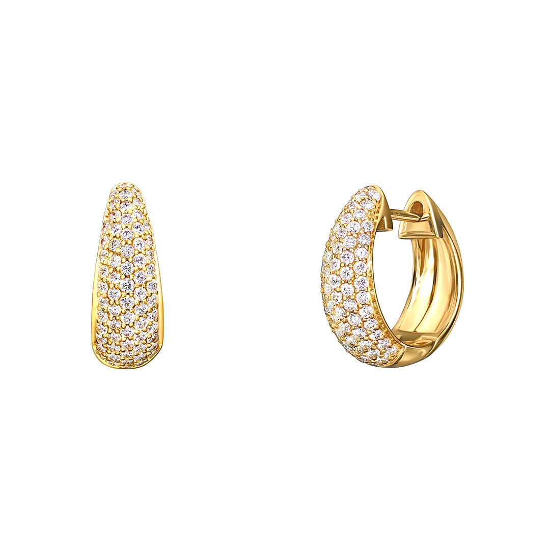 Thick, statement-making huggie hoops, fully paved with brilliant moissanite stones, exude bold glamour. The chunky design paired with continuous sparkle creates an unmissable look, perfect for elevating casual outfits or stealing the spotlight at events. A striking blend of daring style and everyday wearability.