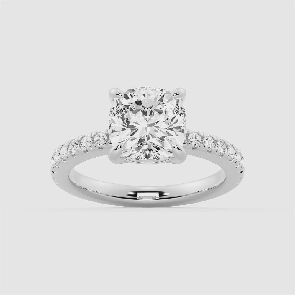Pavé Band Cushion Cut Moissanite Engagement Ring