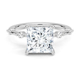 Princess Cut Moissanite Ring with Diamond Spaced Band and Hidden Halo - MSBLUE JEWELRY