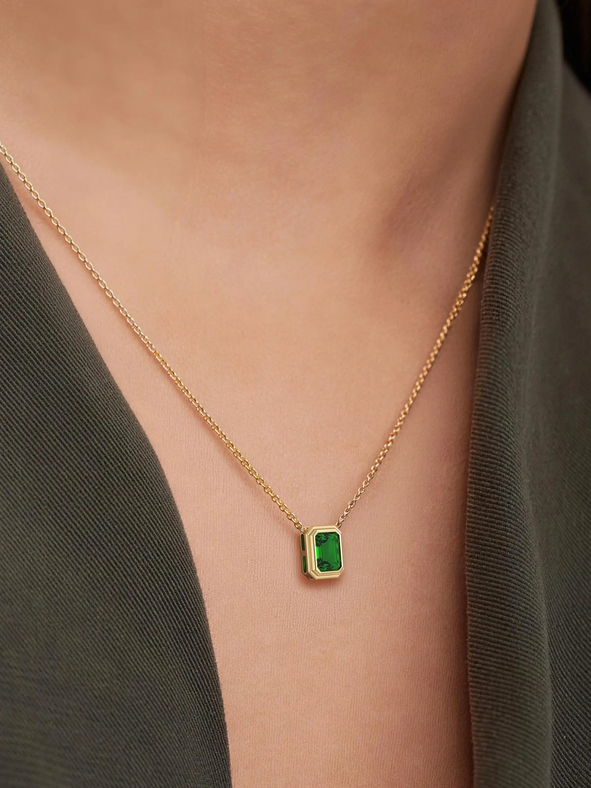 A refined emerald-cut green nano emerald necklace. Elegant yet effortless, perfect for daily wear and modern layering.