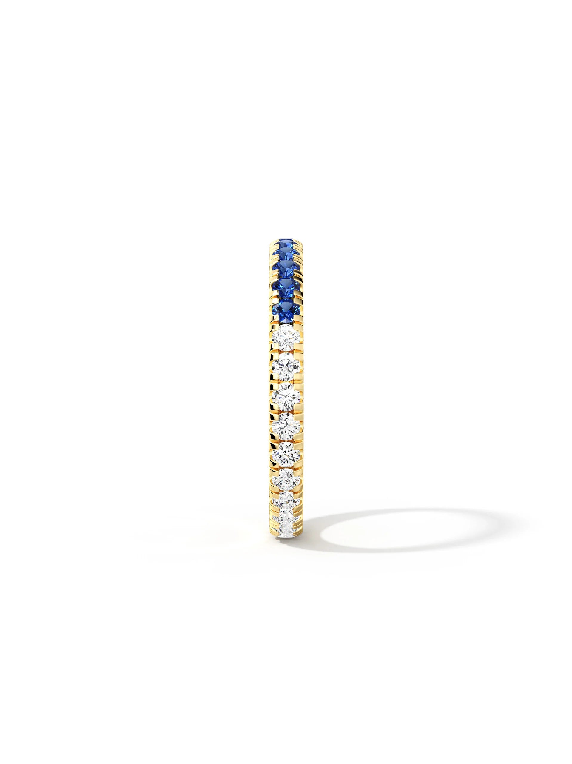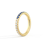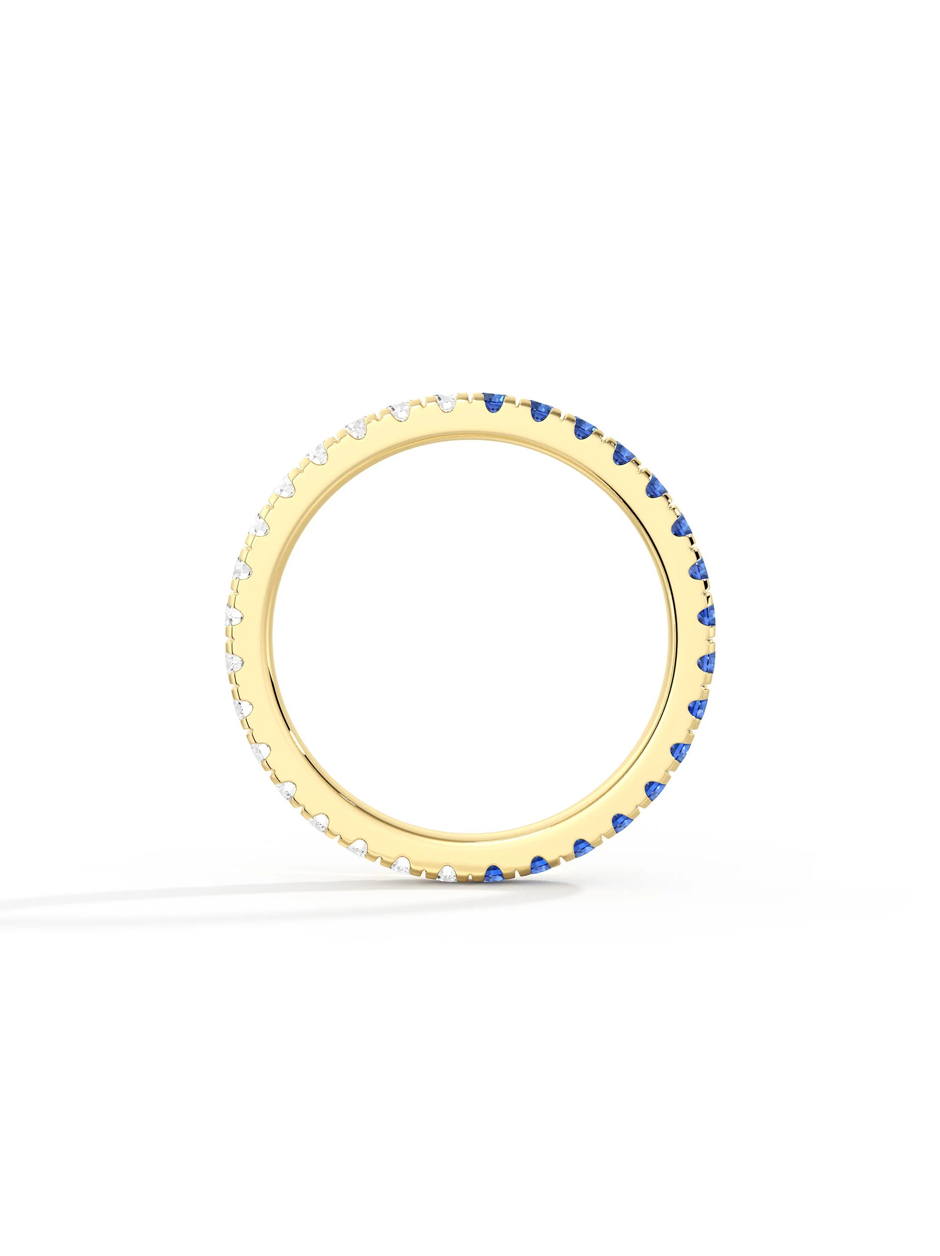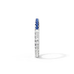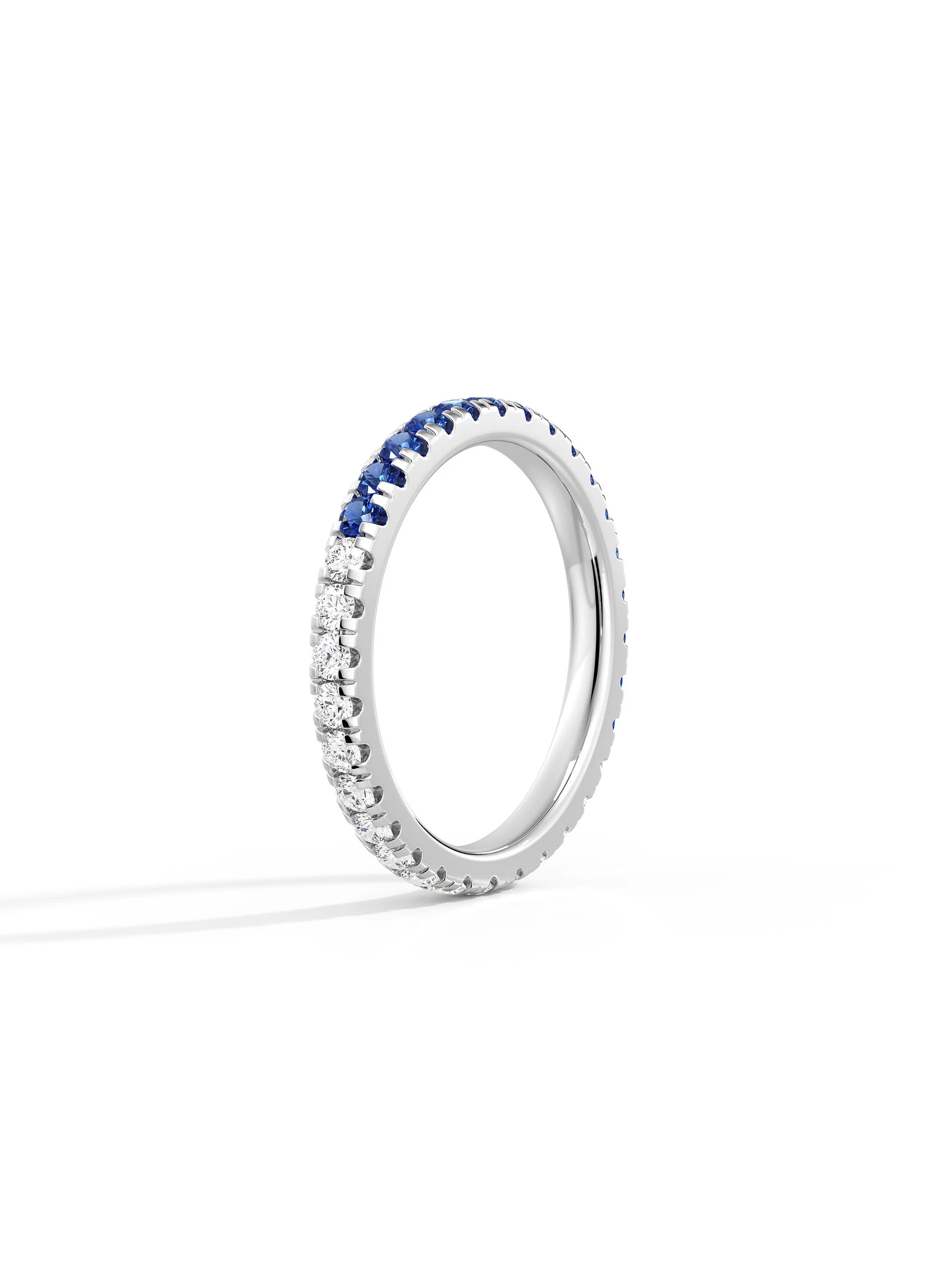Blue and white moissanite create bold contrast and sparkle. Designed for stacking or solo wear, lightweight and secure for everyday styling.