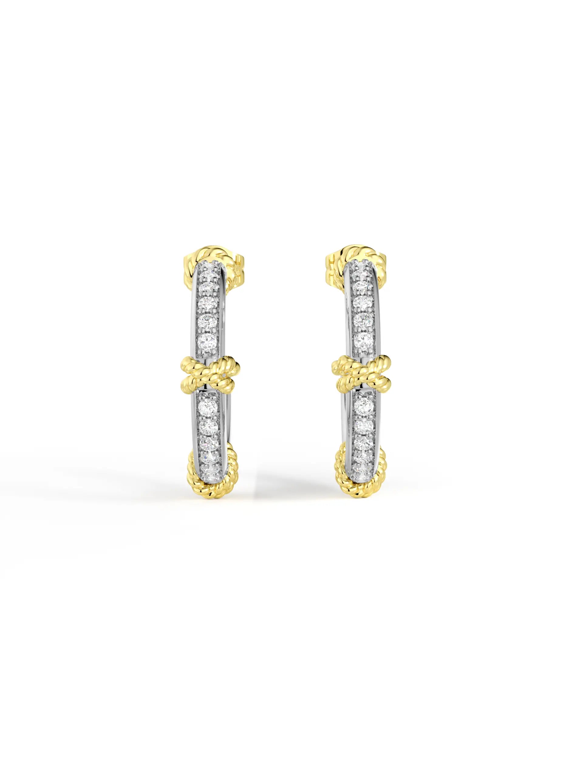 Two-tone C-shaped studs with asymmetrical sparkle detailing. Lightweight and refined, perfect for daily styling with a modern edge.