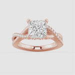 Princess Cut Moissanite Twisted Band Engagement Ring with Hidden Accents