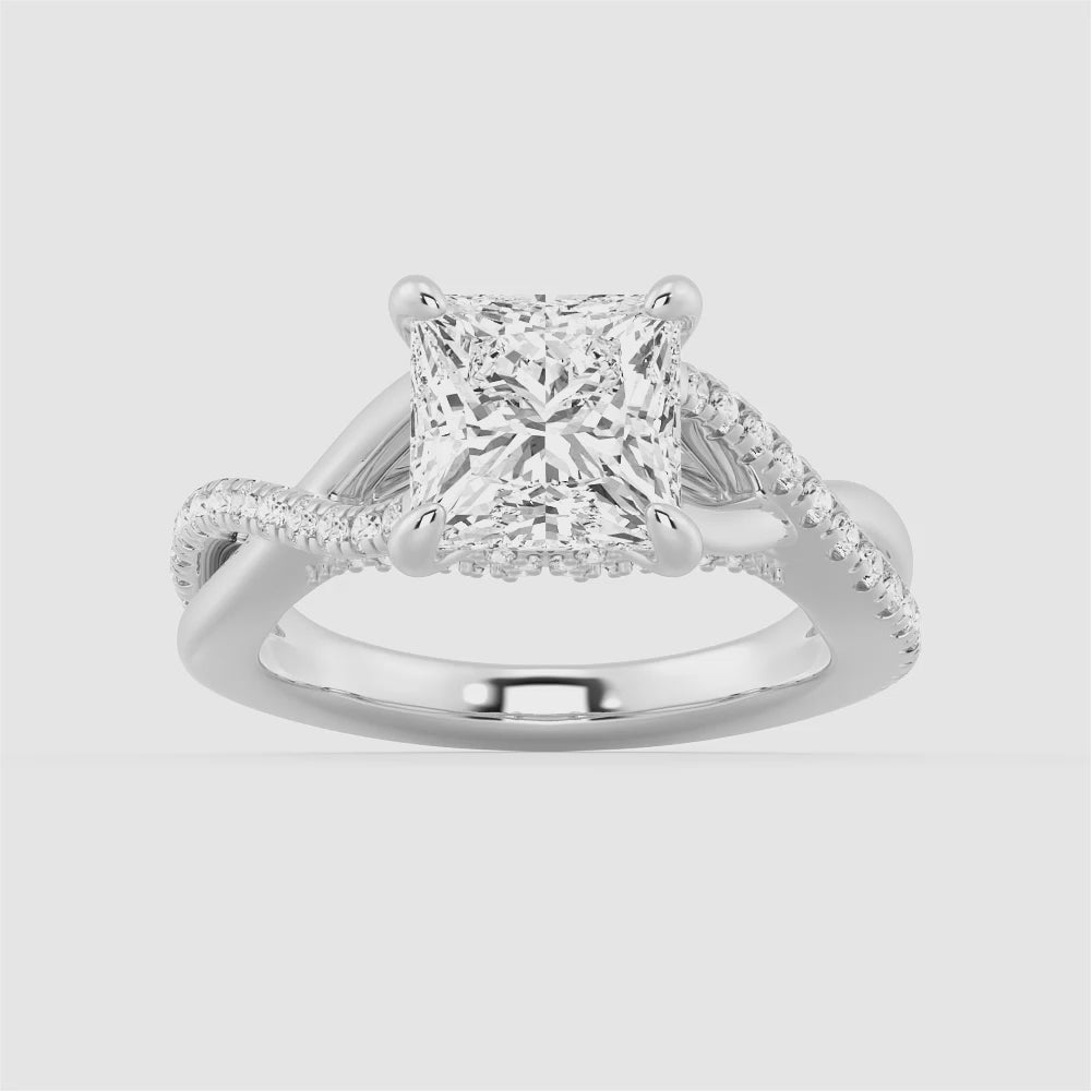 Princess Cut Moissanite Twisted Band Engagement Ring with Hidden Accents - MSBLUE JEWELRY