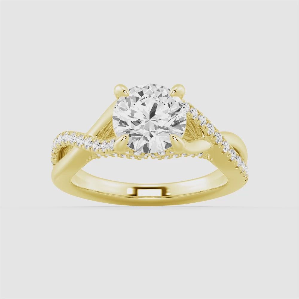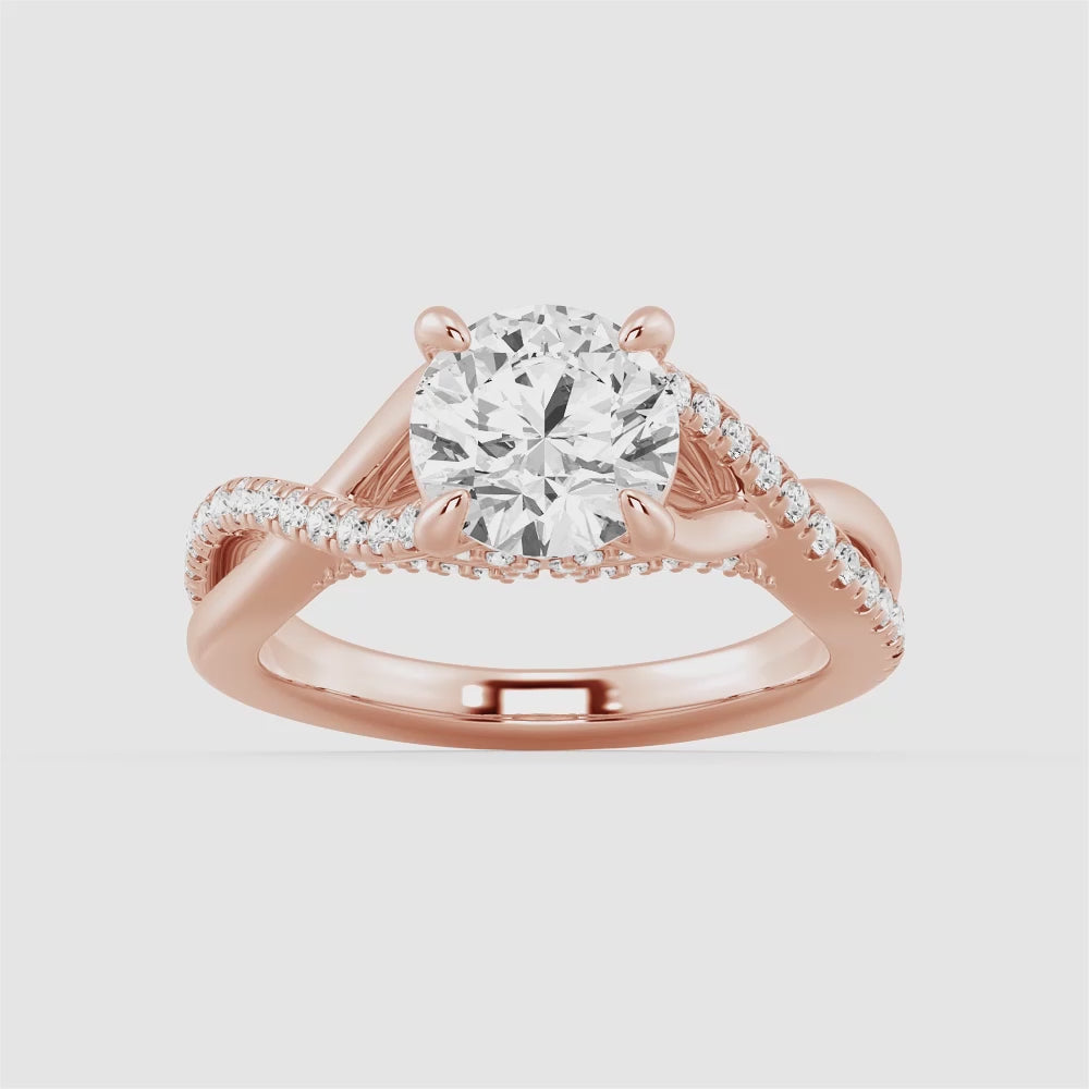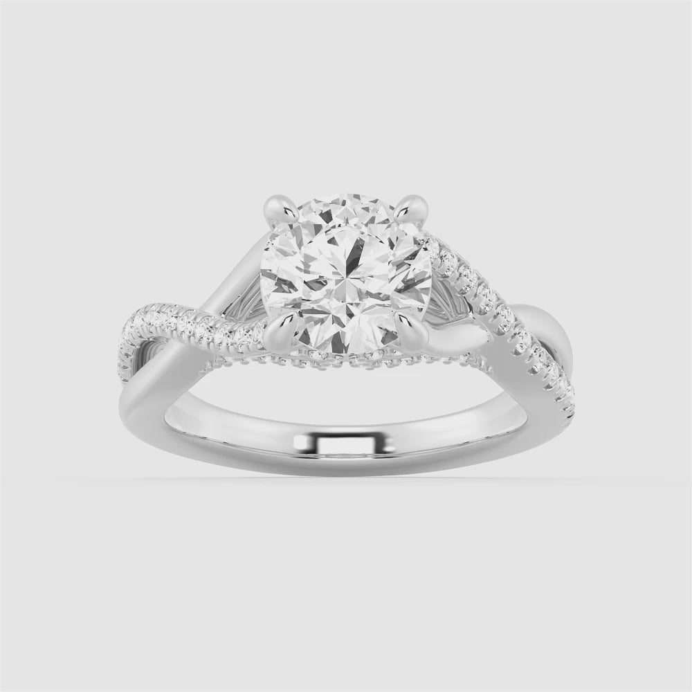 Round Moissanite Twisted Band Engagement Ring with Hidden Accents