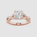 Celebrate your love with the enchanting brilliance of this Round Moissanite Twisted Band Engagement Ring. At its heart lies a dazzling round-cut Moissanite, expertly set to maximize its fire and brilliance. The elegantly intertwined band, adorned with shimmering pavé stones, represents the beautiful journey of two souls coming together.