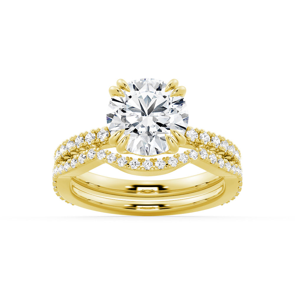 Round Cut Moissanite Ring Set with Matching Stacking Band