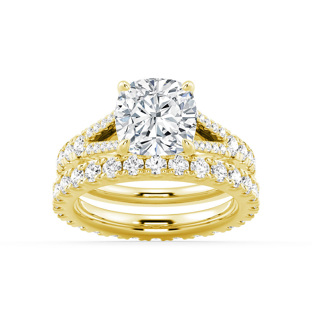 Cushion Cut Split Shank Moissanite Ring Set with Matching Wedding Band