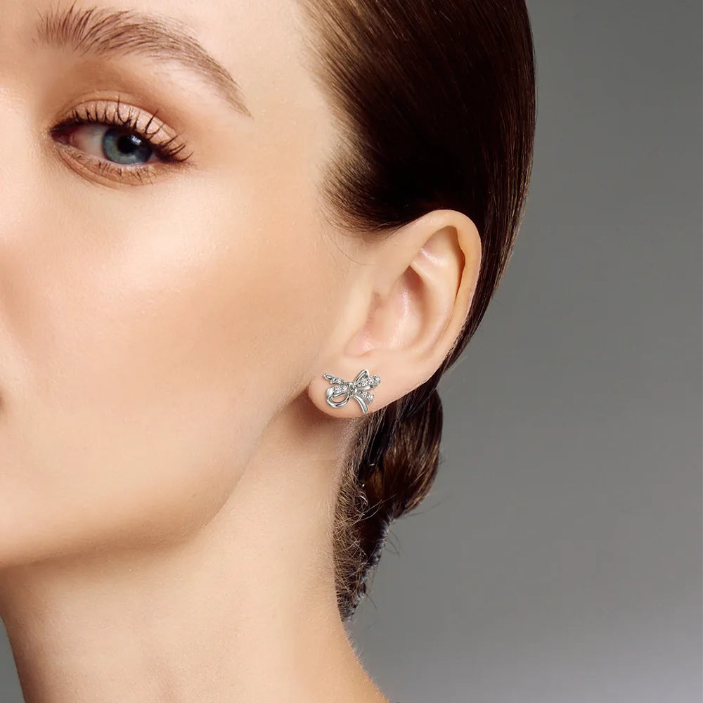 Filigree Bow Edge Moissanite Diamond Stud Earrings