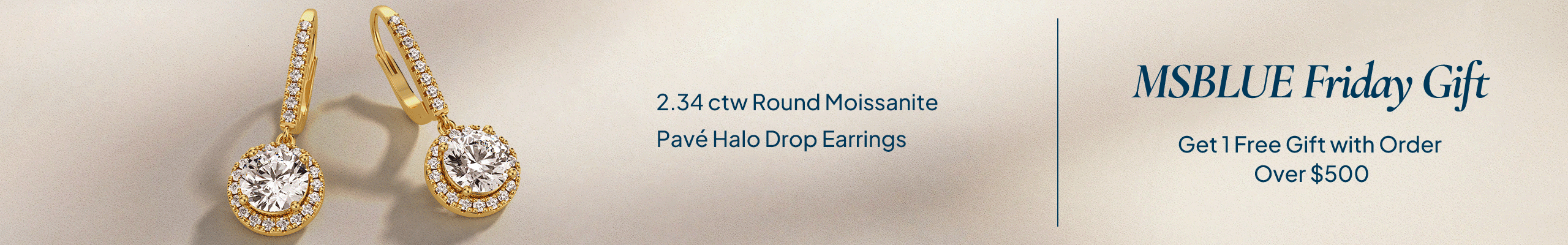 MSBLUE earrings collection featuring classic studs, modern hoops, and statement drops