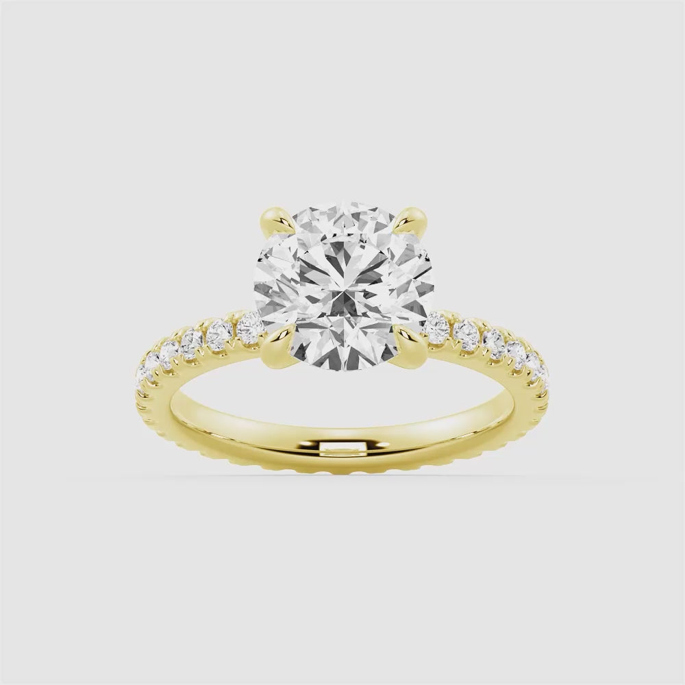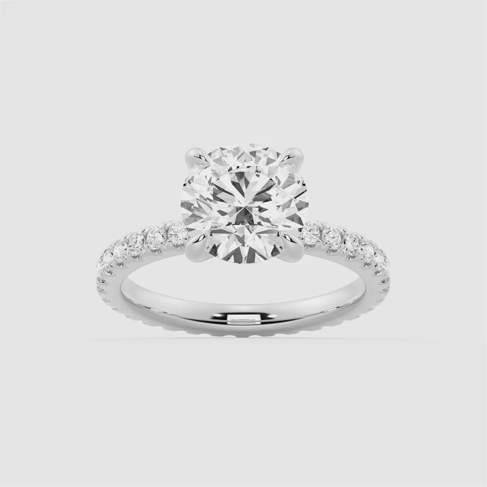 Round Moissanite Engagement Ring With Eternity Pave Band
