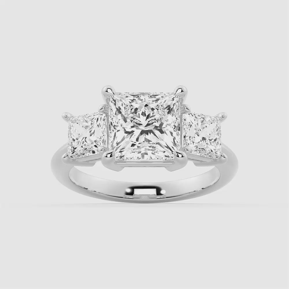 Princess Cut Three Stone Engagement Ring - MSBLUE JEWELRY