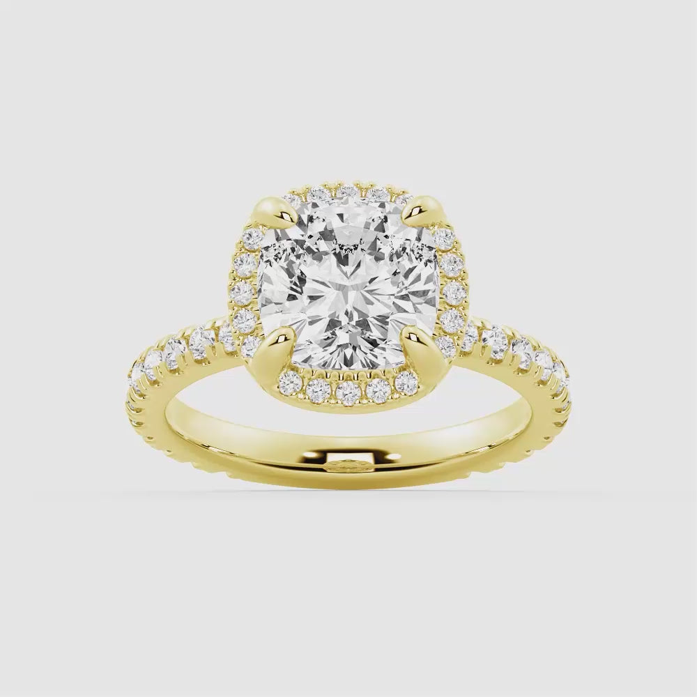 Half Eternity Cushion Cut Moissanite Halo Engagement Ring