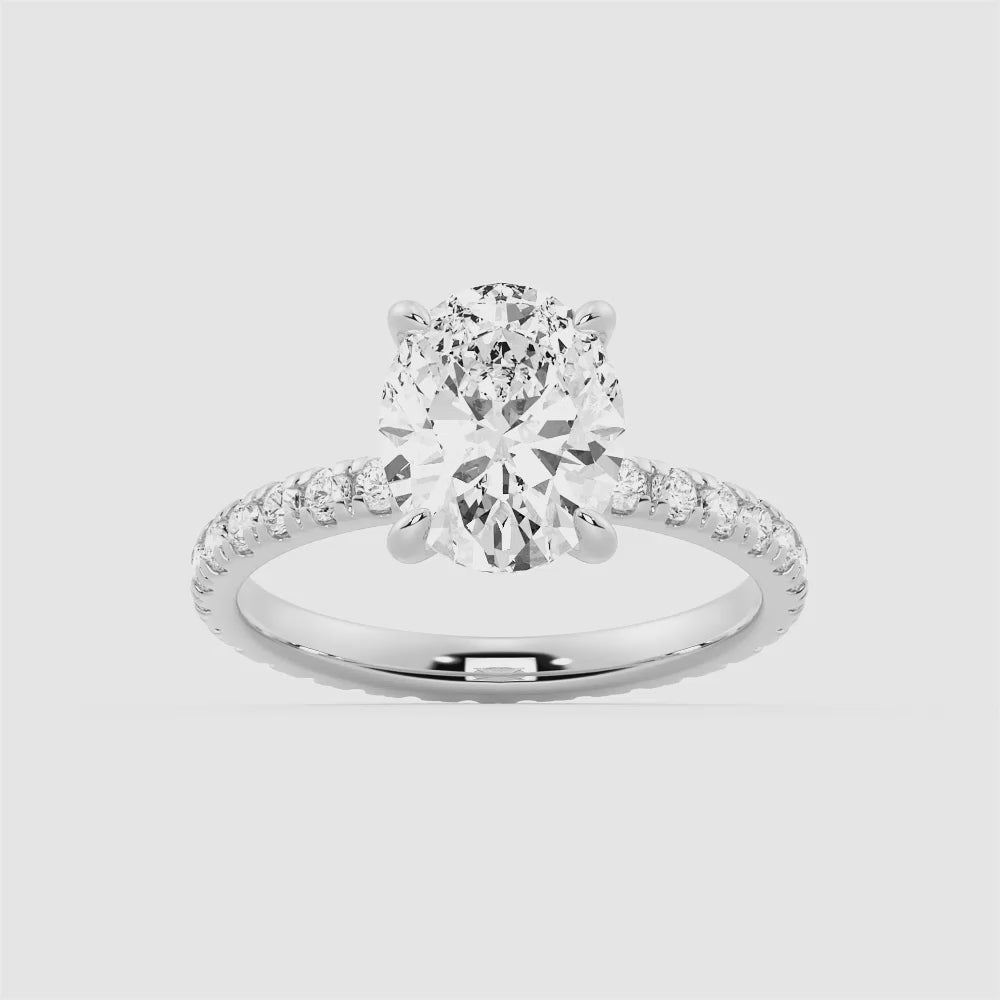 Oval Cut Engagement Ring With Eternity Pave Band - MSBLUE Jewelry