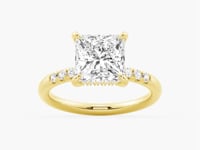 Princess Cut Moissanite Engagement Ring with Hidden Halo and Anniversary Stone Accent