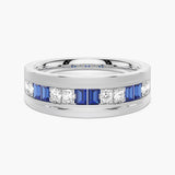 7.5mm Sapphire And Moissanite Men's Wedding Band