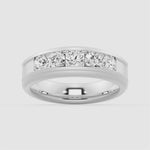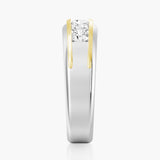 With its striking channel-set Moissanite gemstones and two-tone design, this band exudes contemporary elegance. Available in a range of premium materials, including S925 Silver, 10K Gold, 14K Gold, or Platinum, and your choice of White, Yellow, or Rose Gold, you can customize this band to reflect your personal style. Experience exceptional craftsmanship and timeless beauty with this remarkable men's wedding band, a symbol of enduring love and impeccable quality.