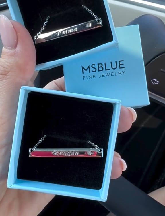 Engravable Bar Necklace with Moissanite - MSBLUE Jewelry
