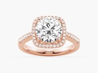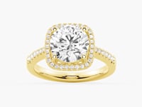 Four Prongs Pavé Halo Moissanite Engagement Ring