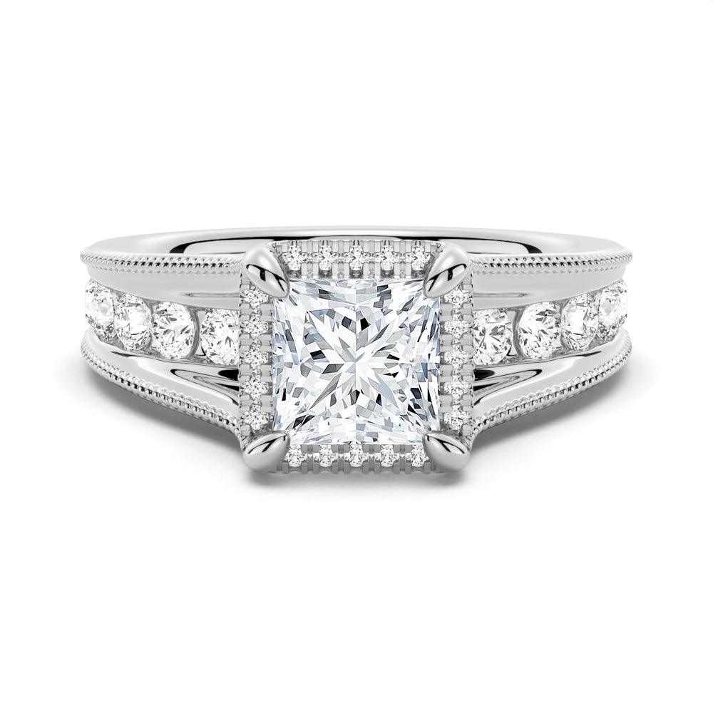 Milgrain Vintage Princess Cut & Round Moissanite Engagement Ring - MSBLUE Jewelry