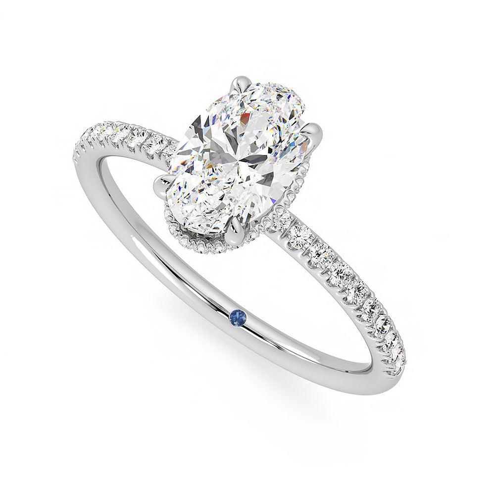 Oval Cut Moissanite Engagement Ring with Hidden Halo and Anniversary Stone Accent - MSBLUE Jewelry