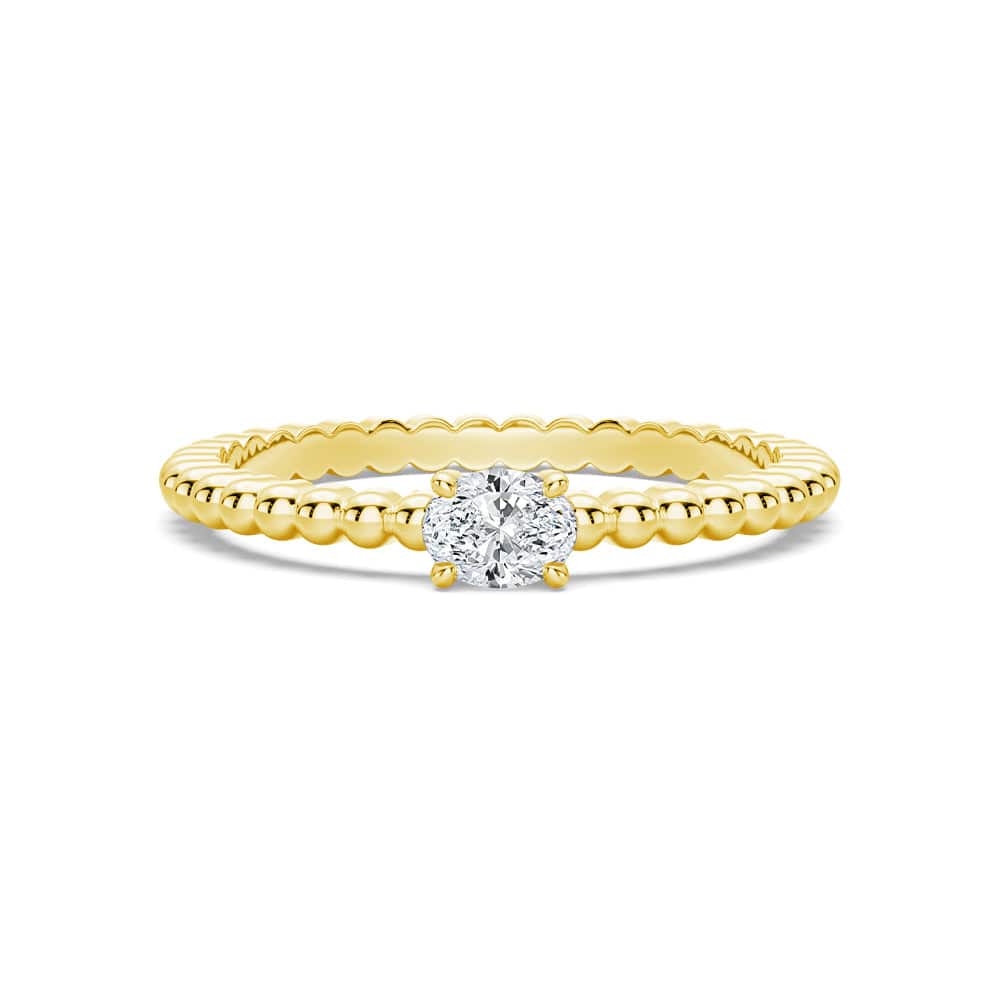 This promise ring is a perfect blend of timeless elegance and ethical luxury. Featuring a 0.15ct oval-shaped lab-grown diamond, sustainably created with zero emissions, this promise ring offers an exquisite display of brilliance and clarity. The bezel setting ensures the diamond’s security while enhancing its natural beauty, with an EF color and VVS-VS clarity.
