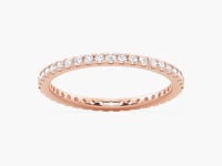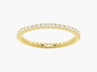 This is a delicate and elegant wedding band that features a continuous row of brilliant round-cut Moissanite stones set in a scalloped pavé style. Available in solid S925 Silver/10K Gold/14k Gold/Platinum, and three colors, white gold, yellow gold, and rose gold color. The band's petite size makes it perfect for stacking or wearing alone as a classic and timeless statement piece. It's a perfect choice for those who love a touch of sparkle and understated elegance in their jewelry.