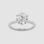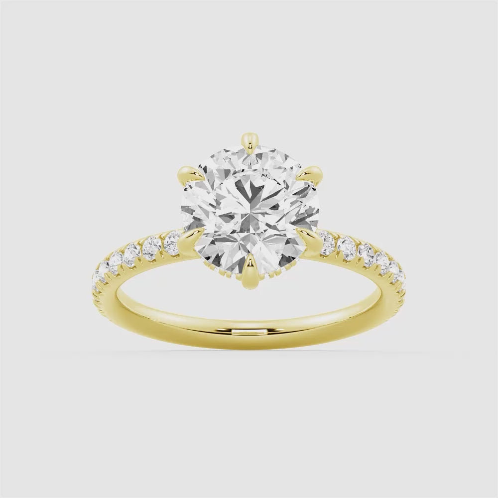 Celebrate the beginning of your forever with our Petite Six-Prong Micropavé Moissanite Engagement Ring with Hidden Halo—a perfect blend of delicate charm and timeless beauty. Order yours today and embark on a journey of enduring love and subtle sophistication.