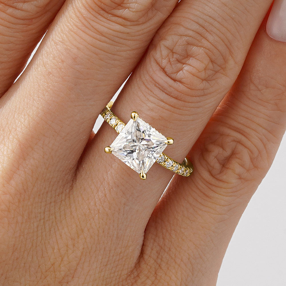 Princess Cut Moissanite Engagement Ring with Hidden Halo and Anniversary Stone Accent - MSBLUE Jewelry