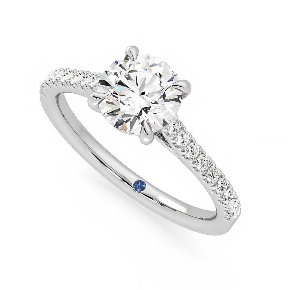 Round Moissanite Engagement Ring with Hidden Anniversary Stone and Pavé Accents