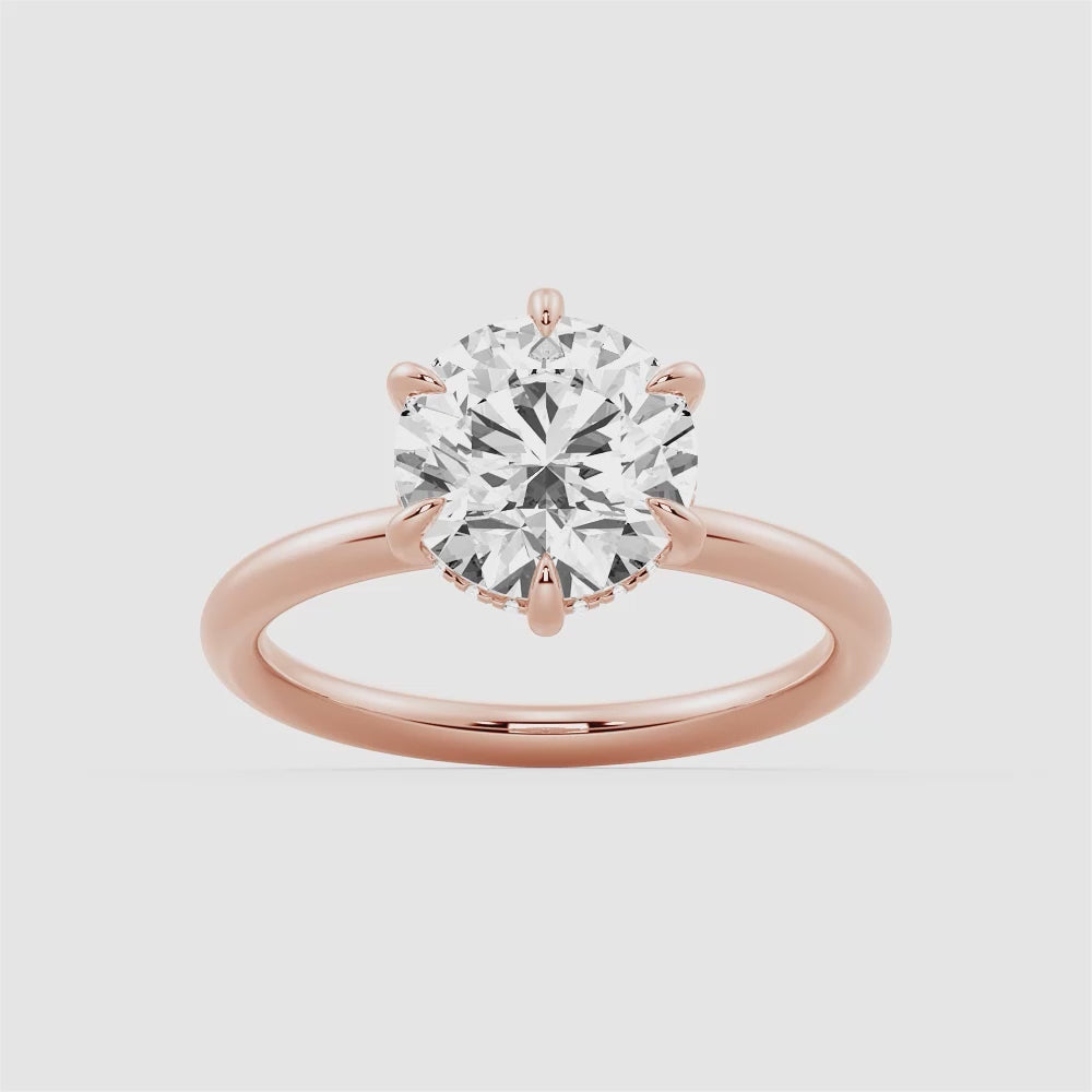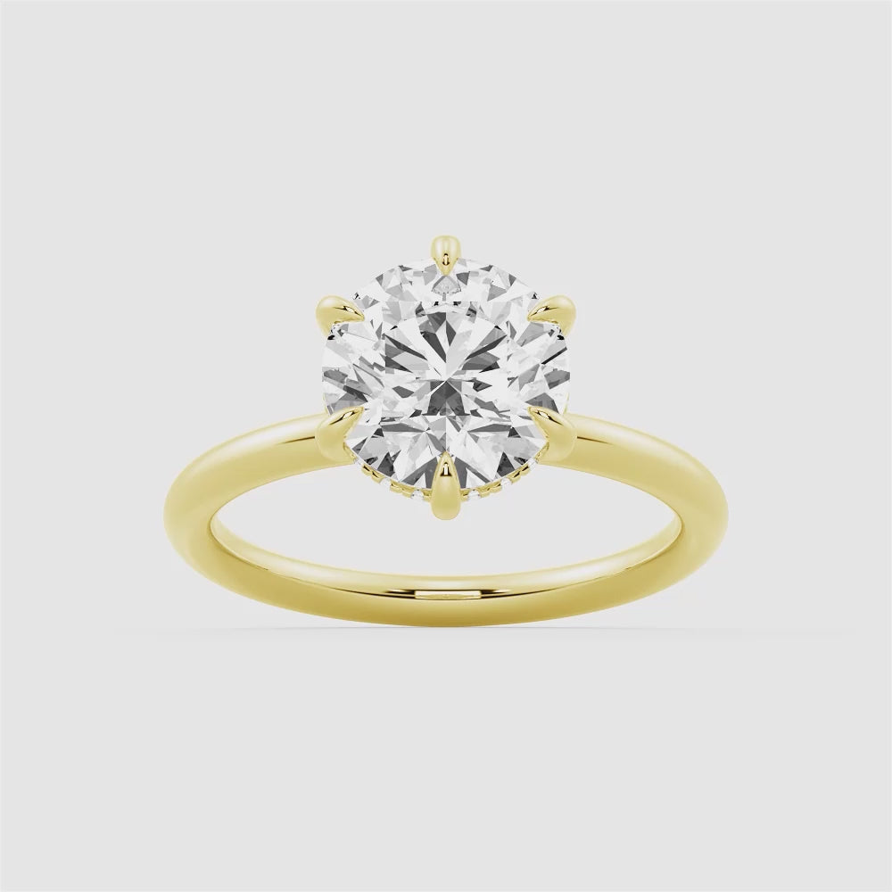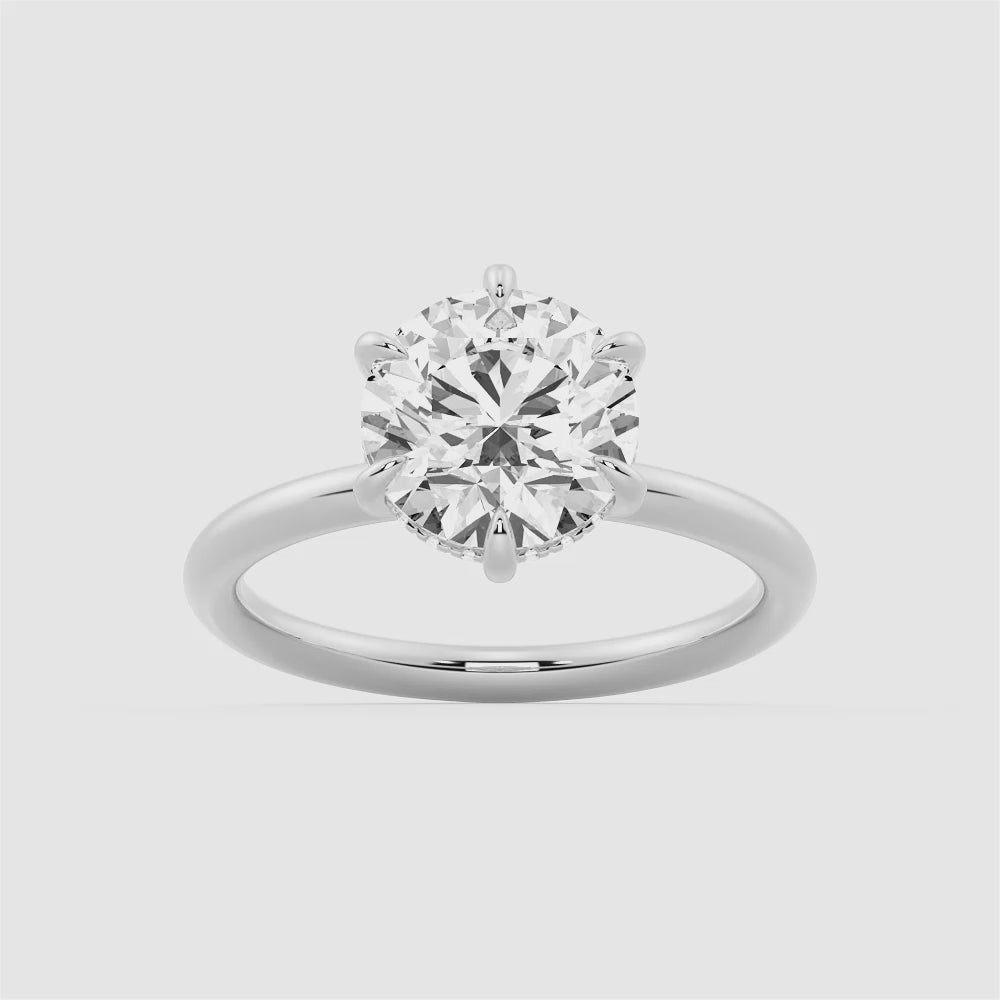 Six Prong Solitaire Moissanite Engagement Ring With Hidden Halo