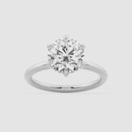 This six-prong solitaire is the ultimate classic engagement ring style. Crafted to showcase your choice of diamond, petite six claw prongs secure and support the center stone. The slender silhouette and polished finish of this solitaire exemplify timeless design, proving simple can be truly stunning.