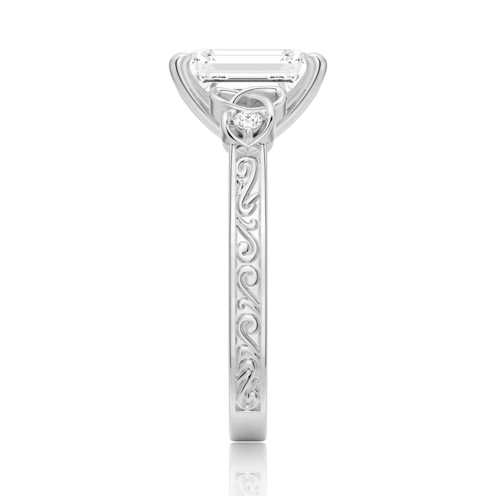 Vintage Celtic Knots Design Emerald Cut Moissanite Engagement Ring