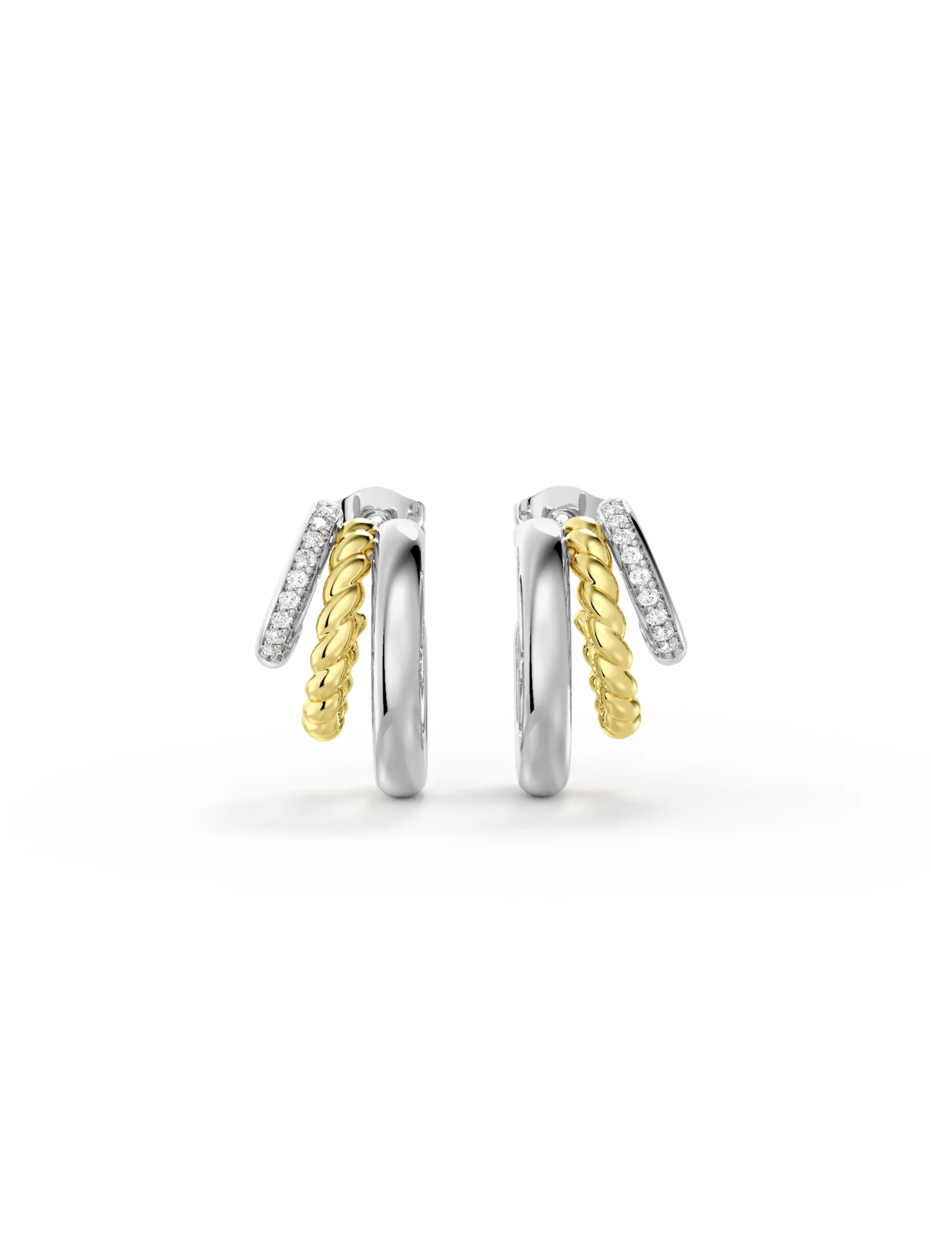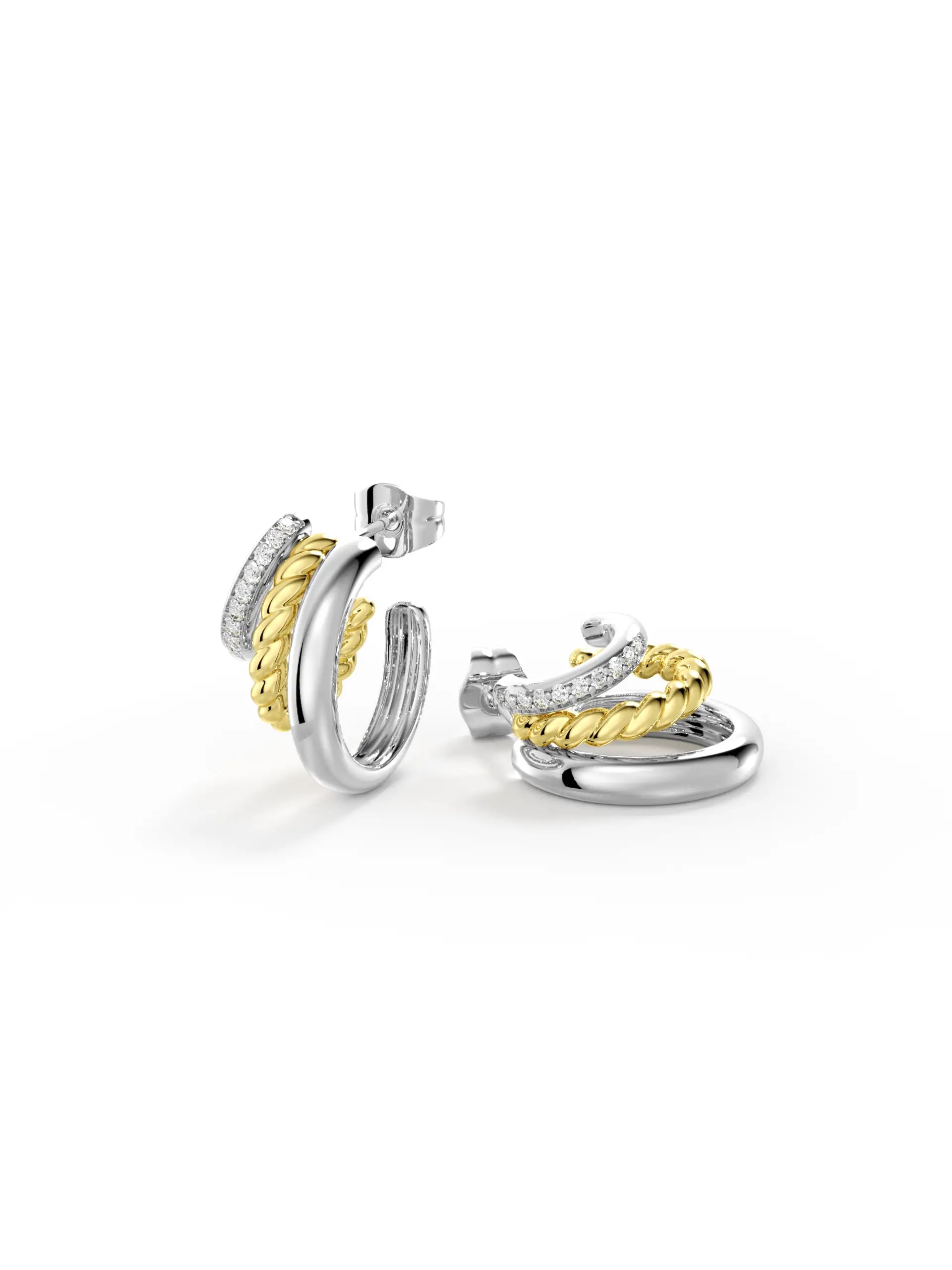 Three interlocking loops in mixed metal tones with refined sparkle edging. Bold yet balanced, perfect for elevated daily styling.