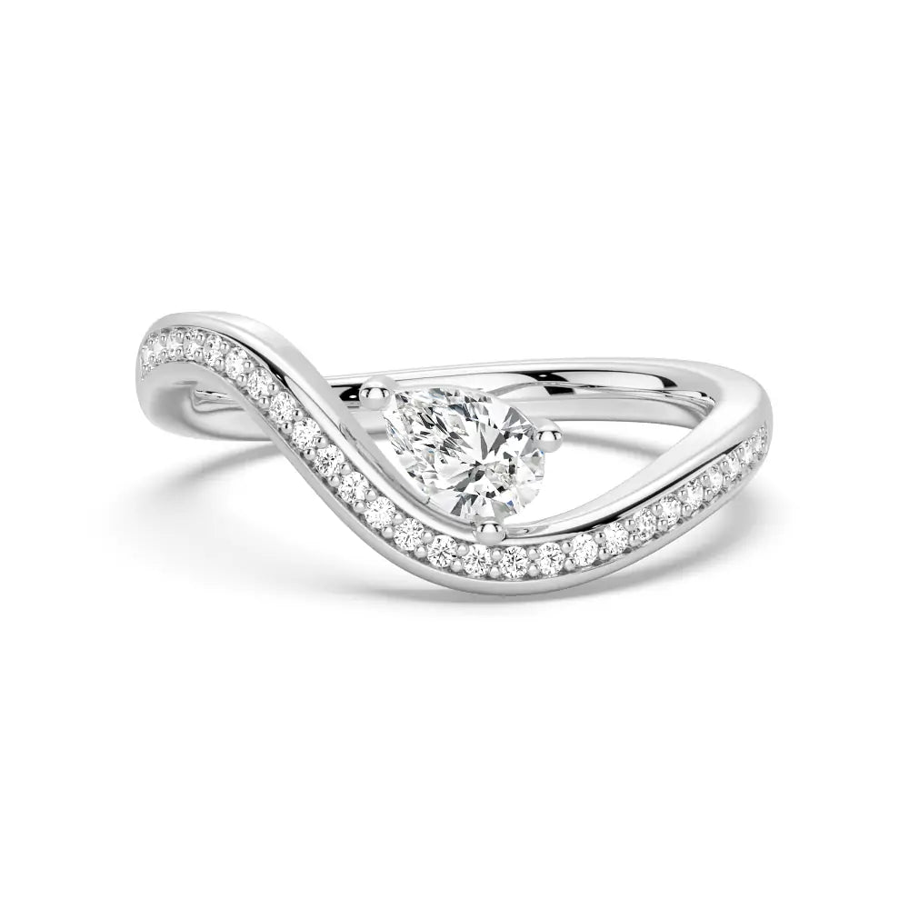 Pear Shaped Solitaire Pavé Wave Promise Ring