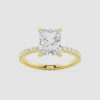 Radiant Cut Moissanite Engagement Ring With Eternity Pave Shank