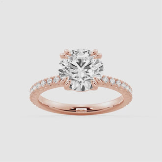Solitaire Round Cut Engagement Ring With Pavé Accents - MSBLUE Jewelry