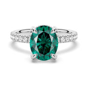 2 CT. Micropavé Oval Green Moissanite Engagement Ring With Hidden Halo - MSBLUE Jewelry