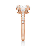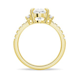 Three Stone Oval & Half Moon Moissanite Engagement Ring with Pavé Band - MSBLUE Jewelry