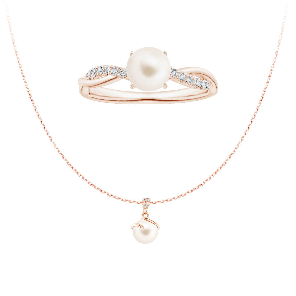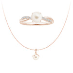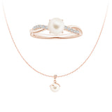 8mm Freshwater Cultured Pearl Pendant And Ring Set with Moissanite Accent