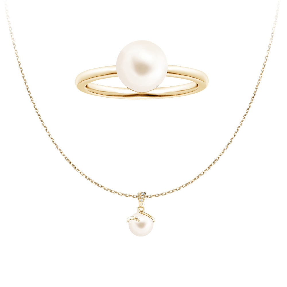8mm Freshwater Cultured Pearl Pendant & Ring Set