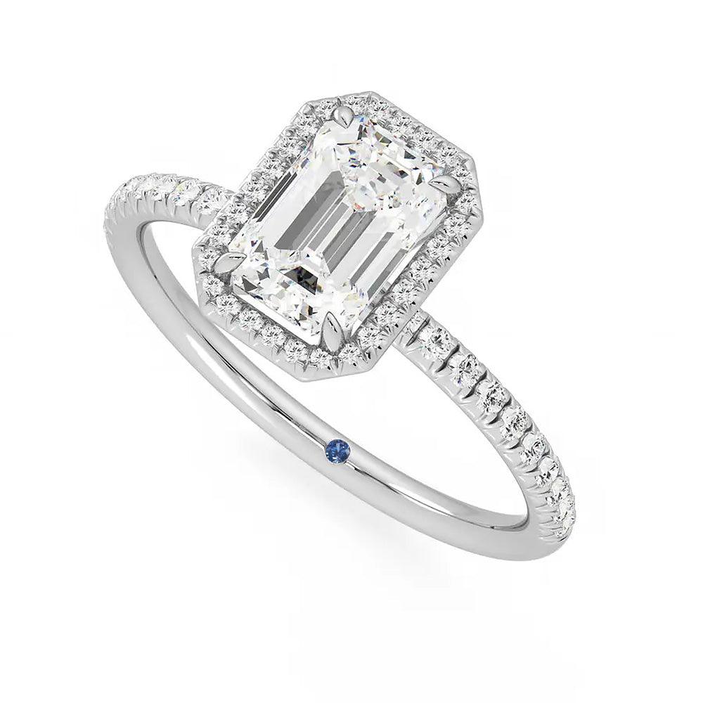Classic Halo Emerald Cut Moissanite Engagement Ring with Hidden Anniversary Stone Accent - MSBLUE Jewelry
