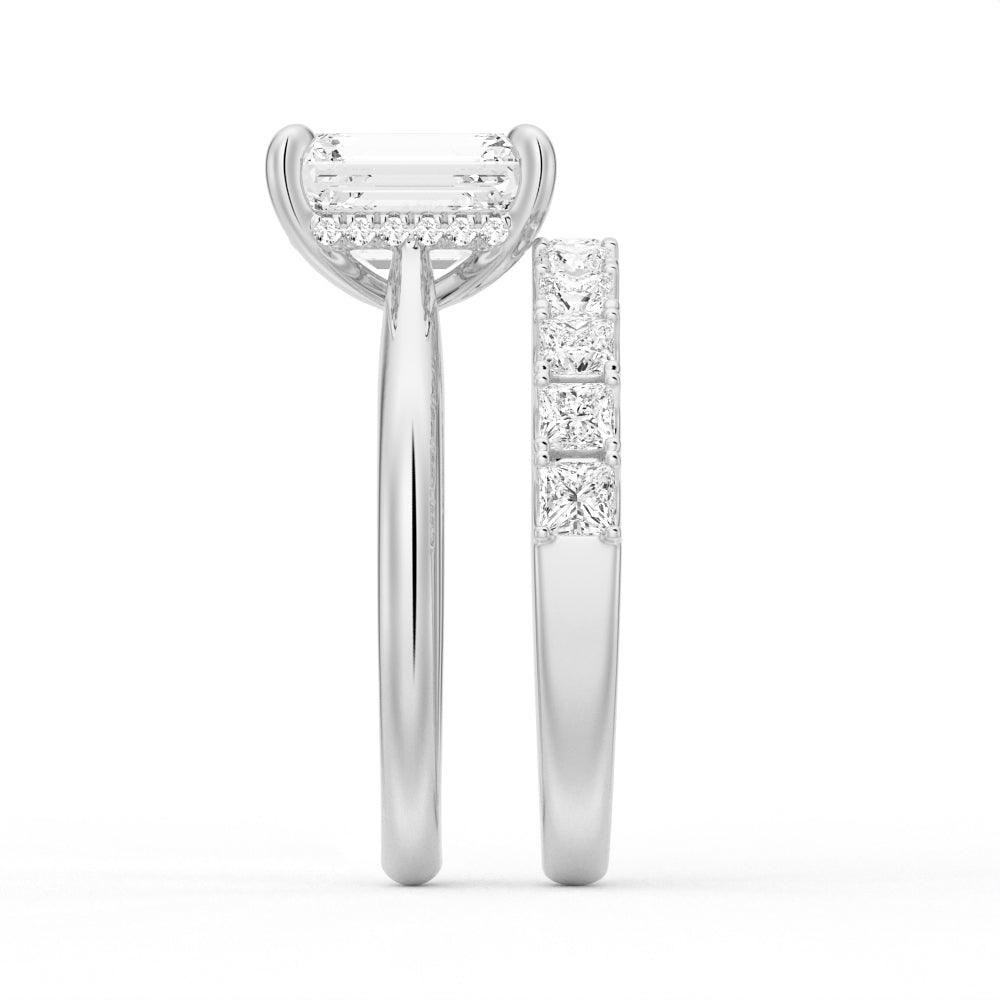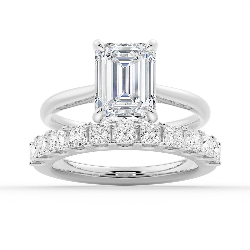 Solitaire Emerald Cut Engagement Ring With Hidden Halo - MSBLUE Jewelry