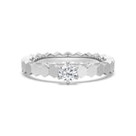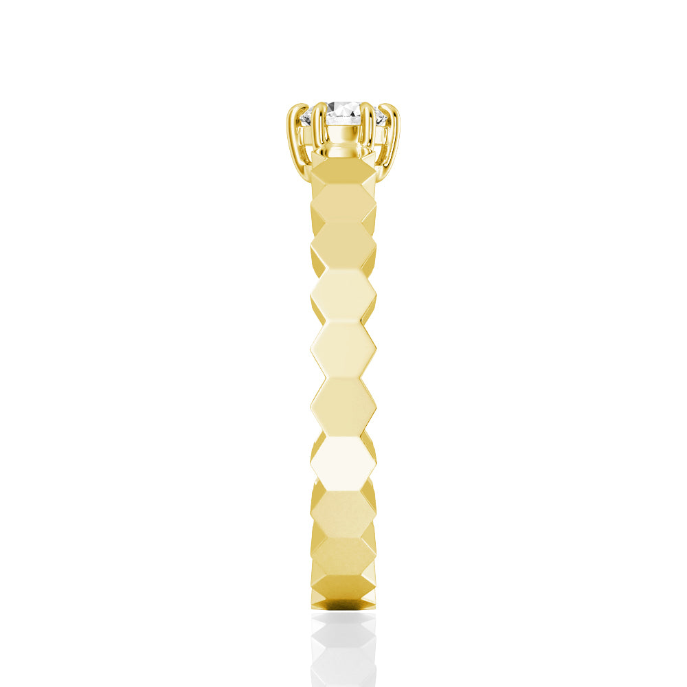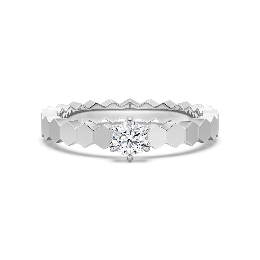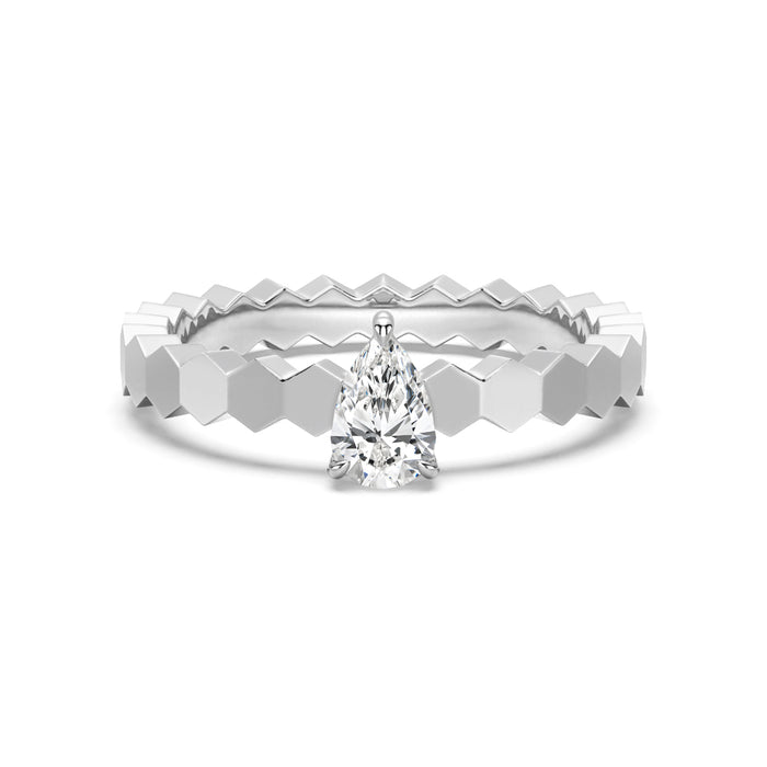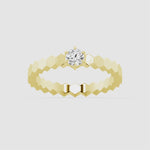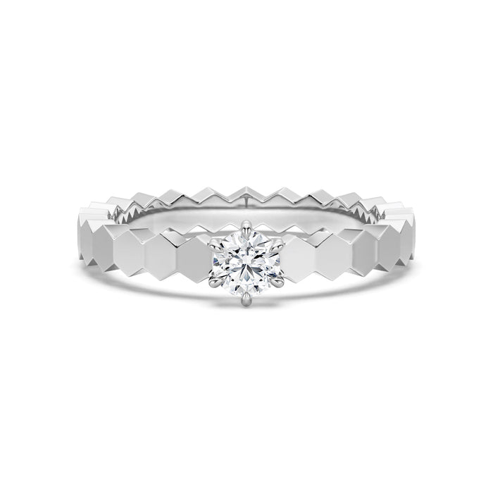 Celebrate commitment with clean lines and conscious beauty. This geometric-inspired ring features a lab-grown diamond cradled in a sculpted six-prong setting, set against a subtly textured hexagonal band. Crafted in your choice of sterling silver with a rhodium finish or 18K yellow gold vermeil, its modern design balances bold angles with everyday elegance. The DEF-color diamond’s ethical origin and brilliant sparkle mirror promises made with intention—sustainable, timeless, and unapologetically true.