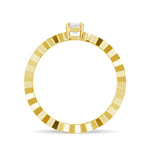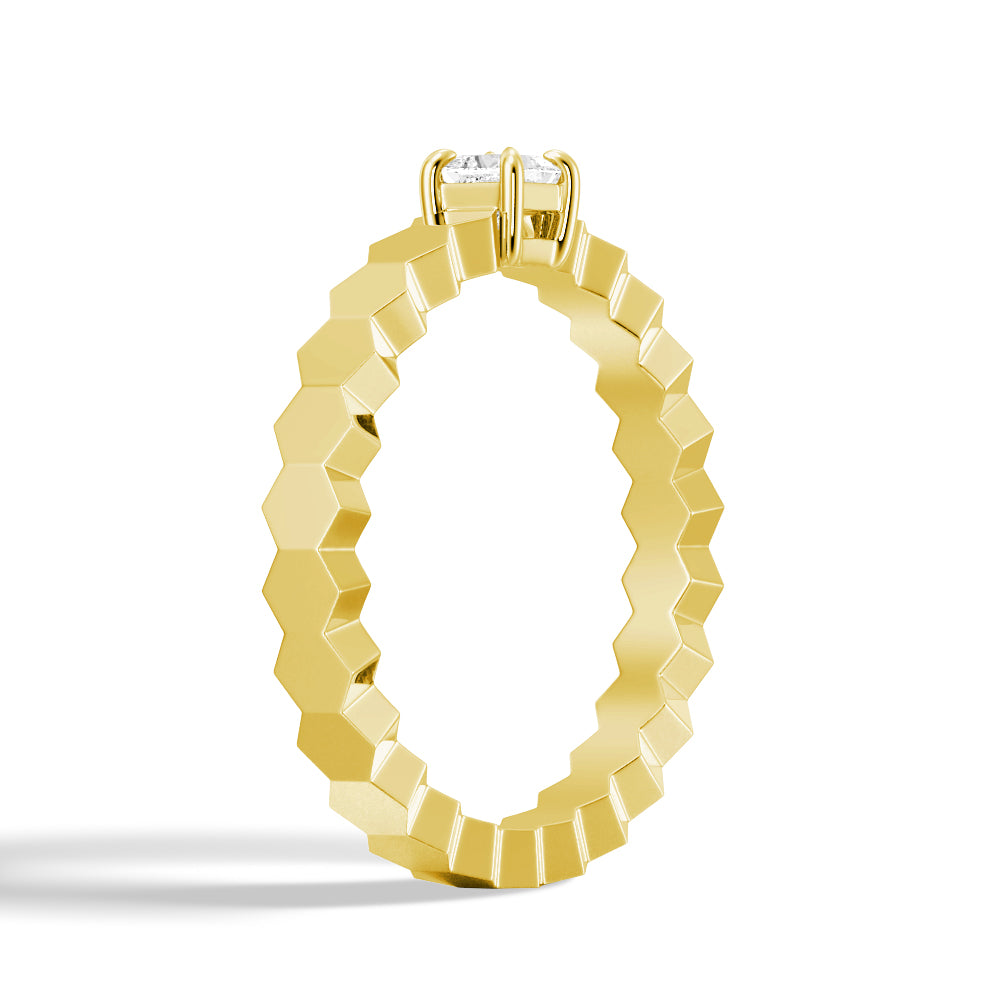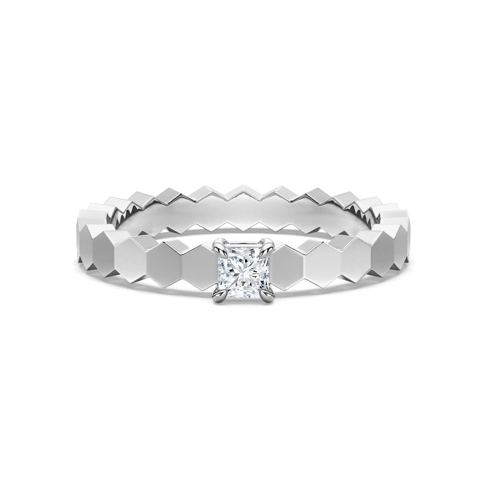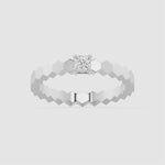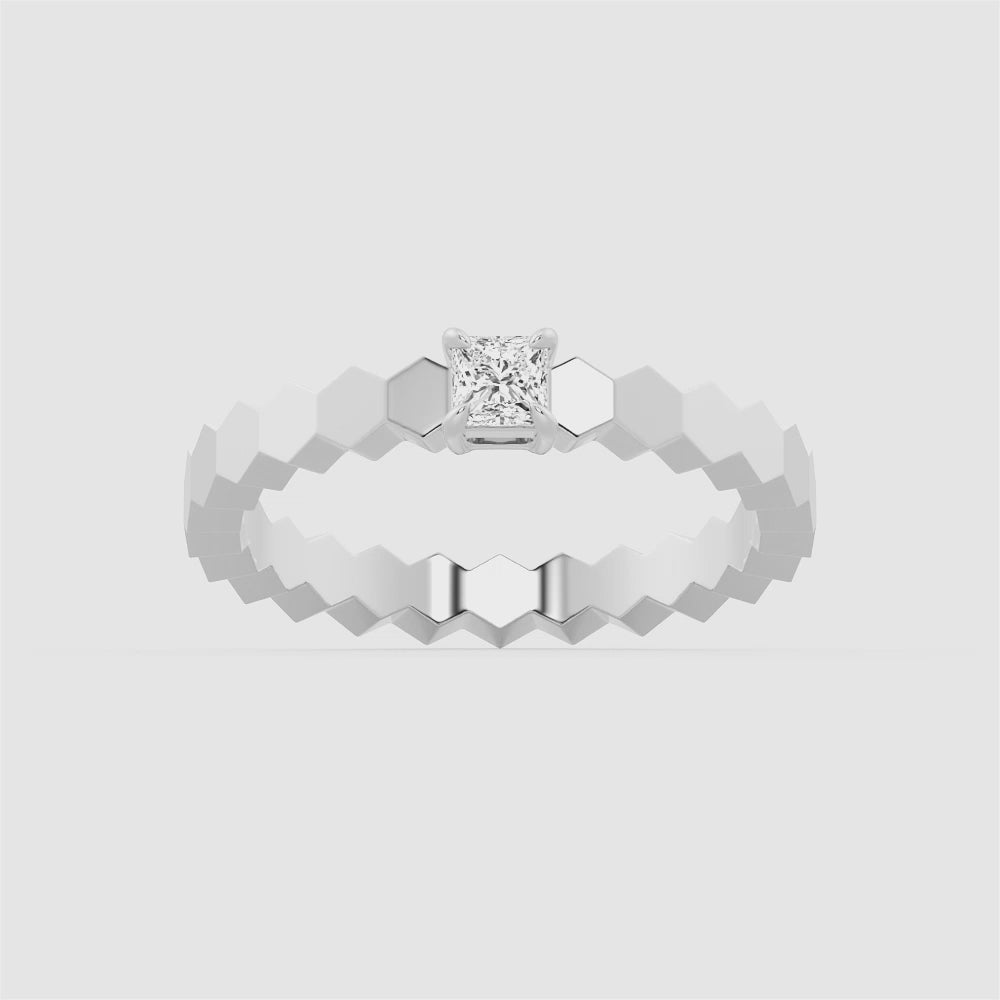 A geometric ode to forever, this promise ring centers a dazzling princess-cut lab-grown diamond, its sharp angles mirroring the interlocking hexagons of the rhodium-finished band. Sustainably crafted with zero-emission diamonds (EF color, VVS-VS clarity), the design balances bold modernity and timeless symbolism—hexagons for unbroken commitment, princess cuts for enduring brilliance. Choose lustrous white gold plating or warm 18K yellow gold vermeil, each offering hypoallergenic durability. A love story told through clean lines and ethical luxury.